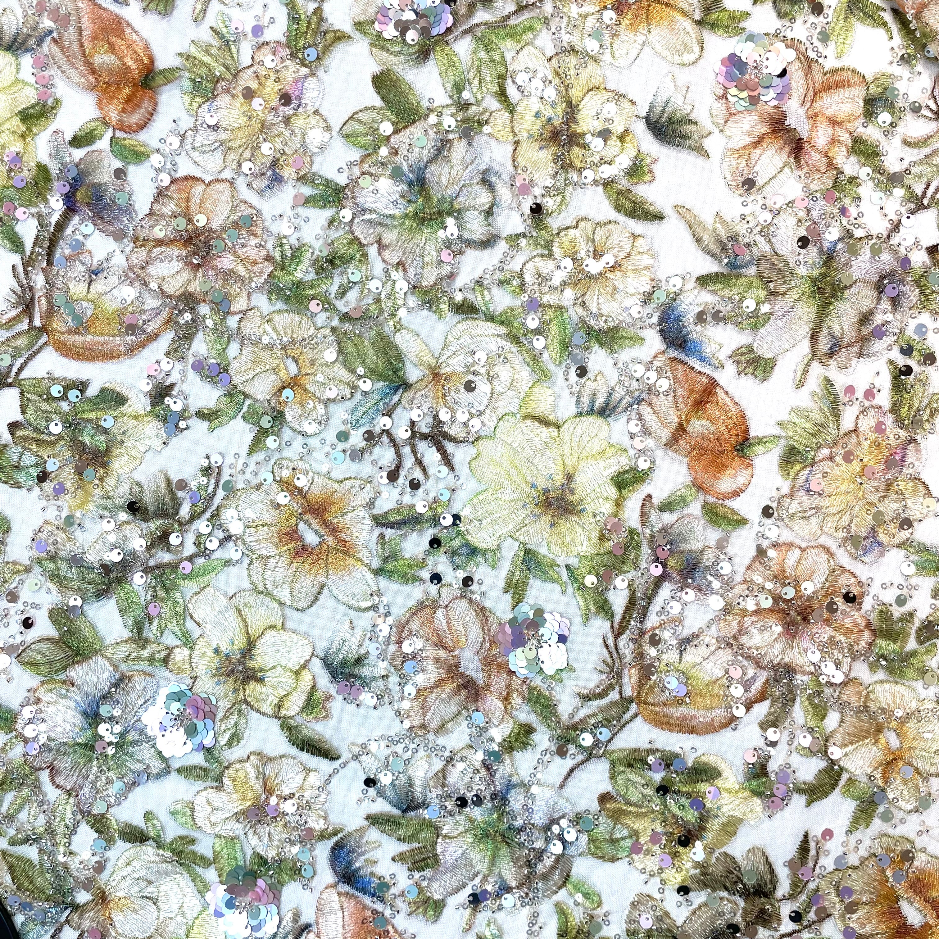 刺繍のグラデーションの繊細さと、スパンコール刺繍のデザインにうっとりします。スパンコールがぎらぎらではなく、艶やかさを演出しています。